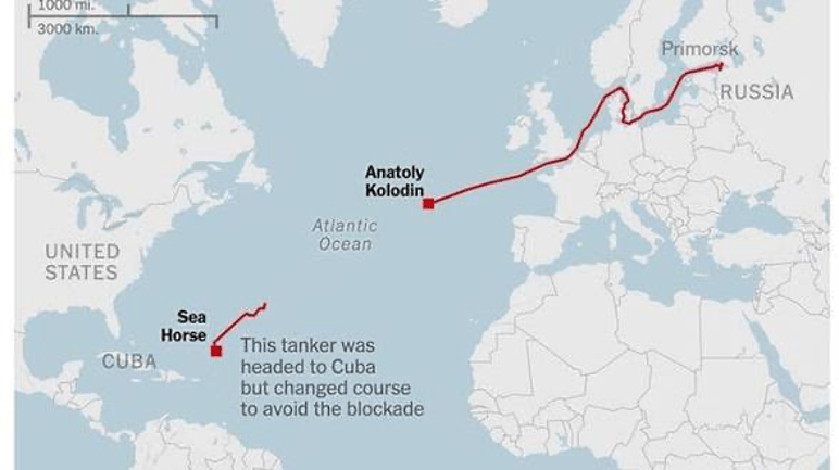 រូបភាពទី១. បង្ហាញពីផែនទីនៃការដឹកប្រេងរបស់រុស្ស៊ីទៅគុយបា
